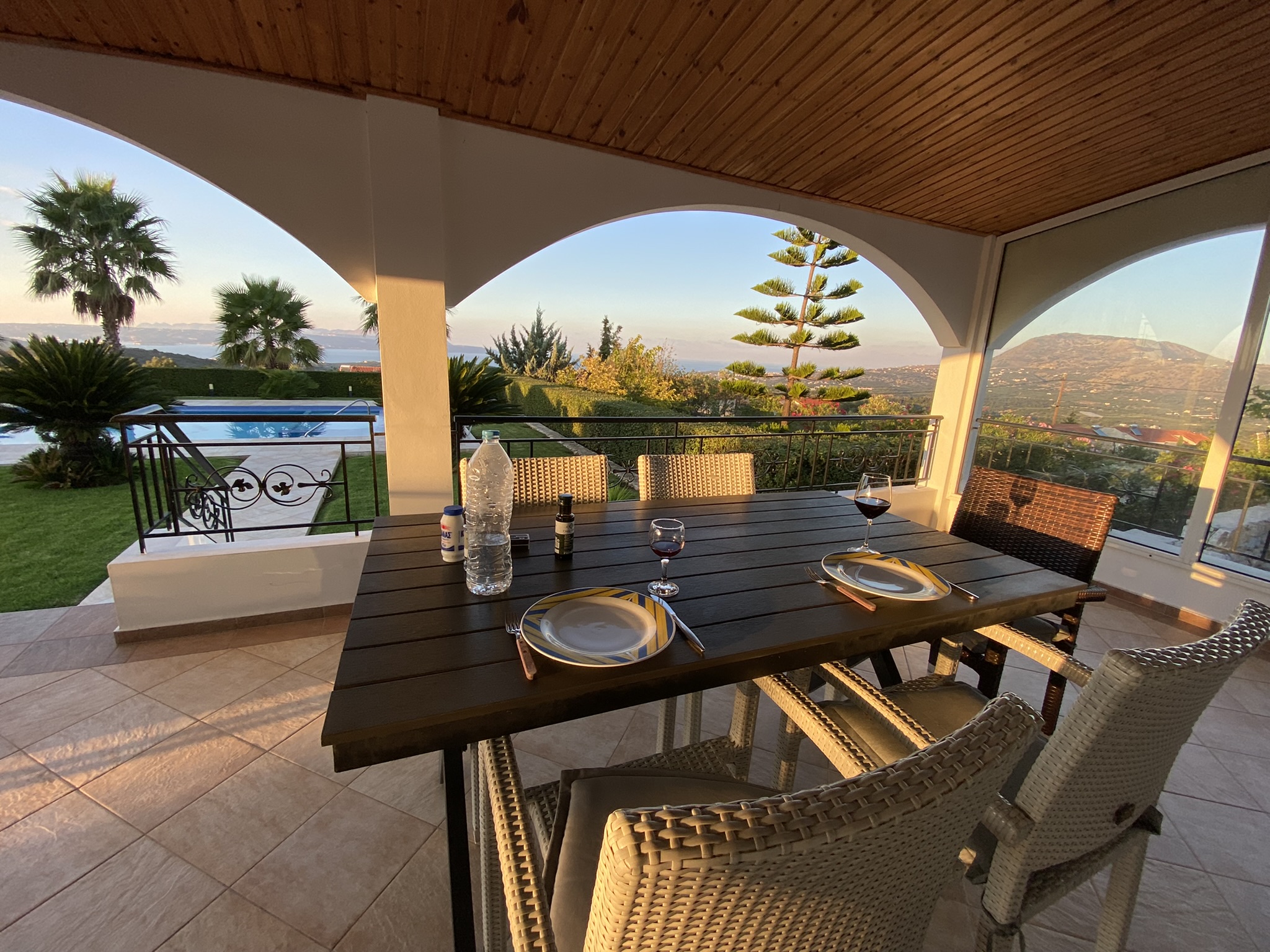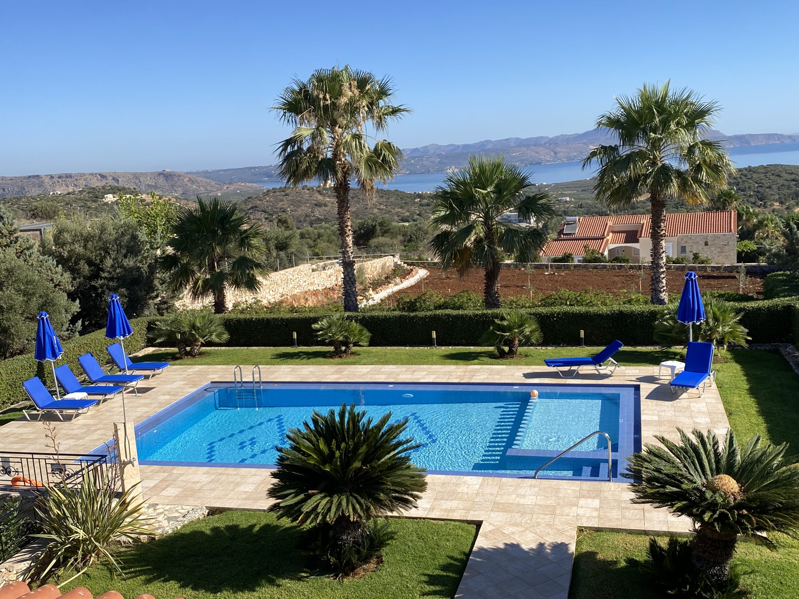 Villa Astrea is located on a hill offering spectacular views to the Sea and to the White Mountains with an altitude of over 2400 meters.