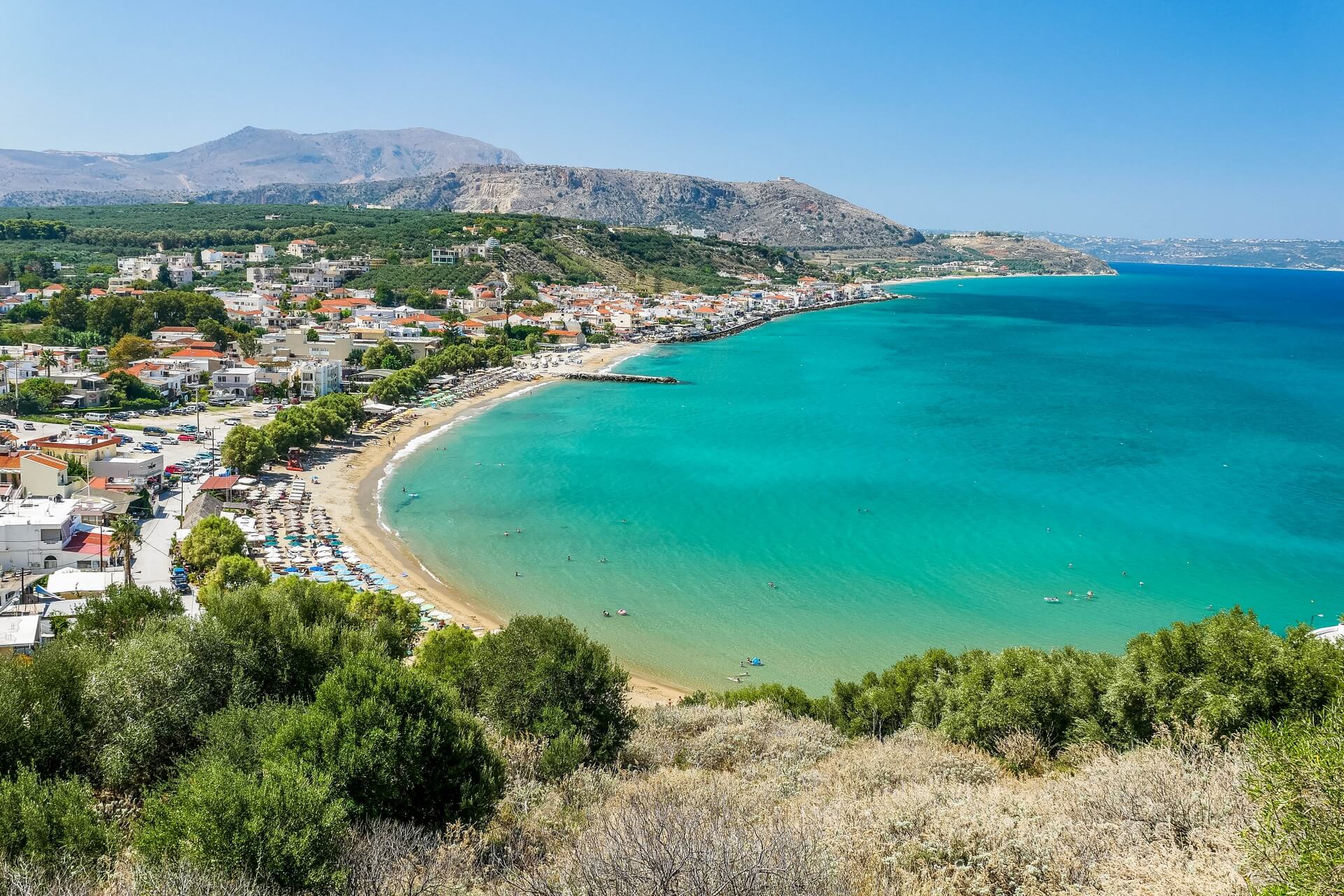 Almyrida, a charming Chania beach, boasts turquoise waters, soft sands, and cozy tavernas, offering a perfect mix of relaxation and Cretan hospitality.
